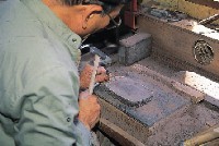 赤間硯は質が固く緻密で、石眼や美しい紋様があり、しかも粘りがあるため細工がしやすく、硯石として優れた条件をもっています。